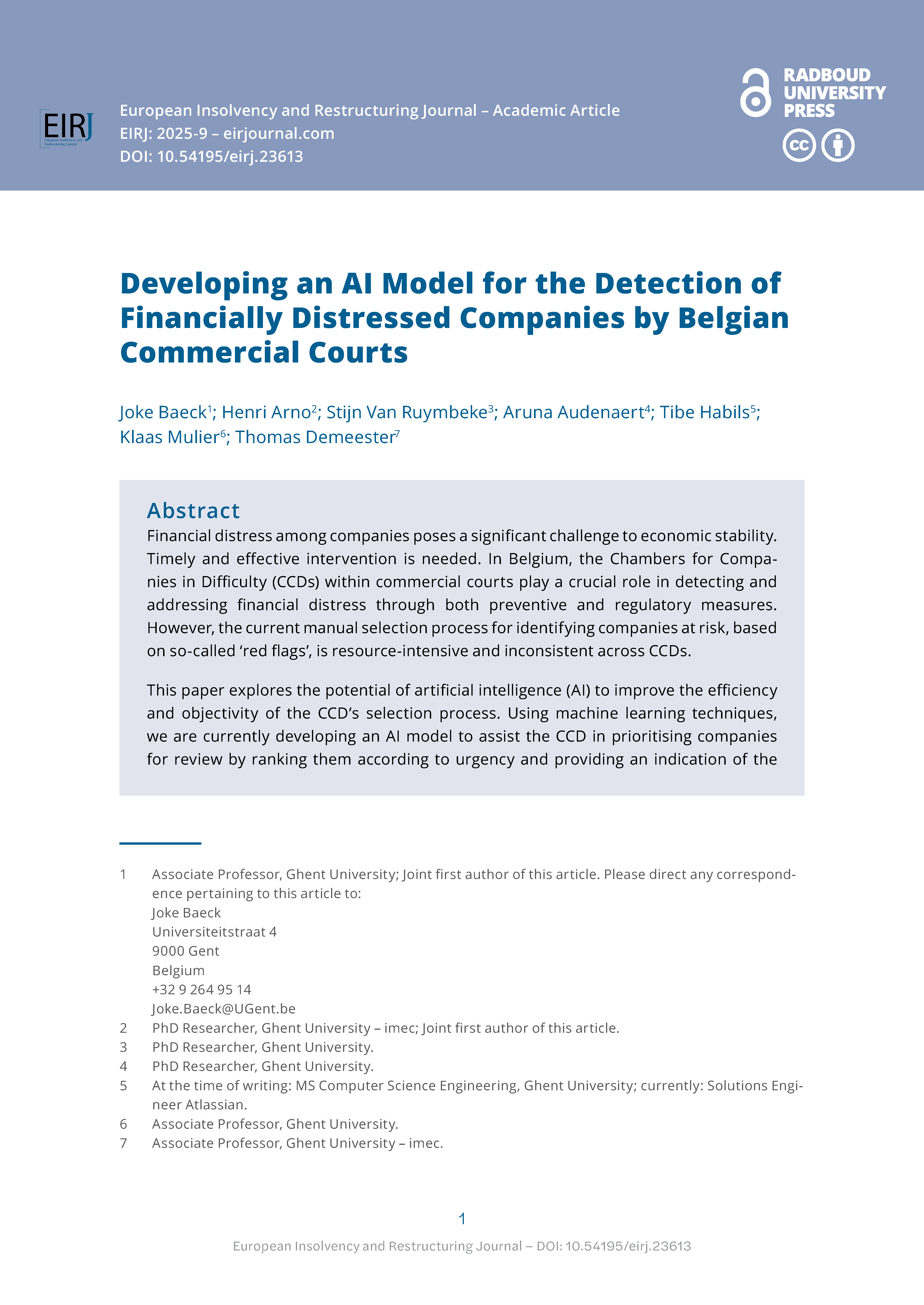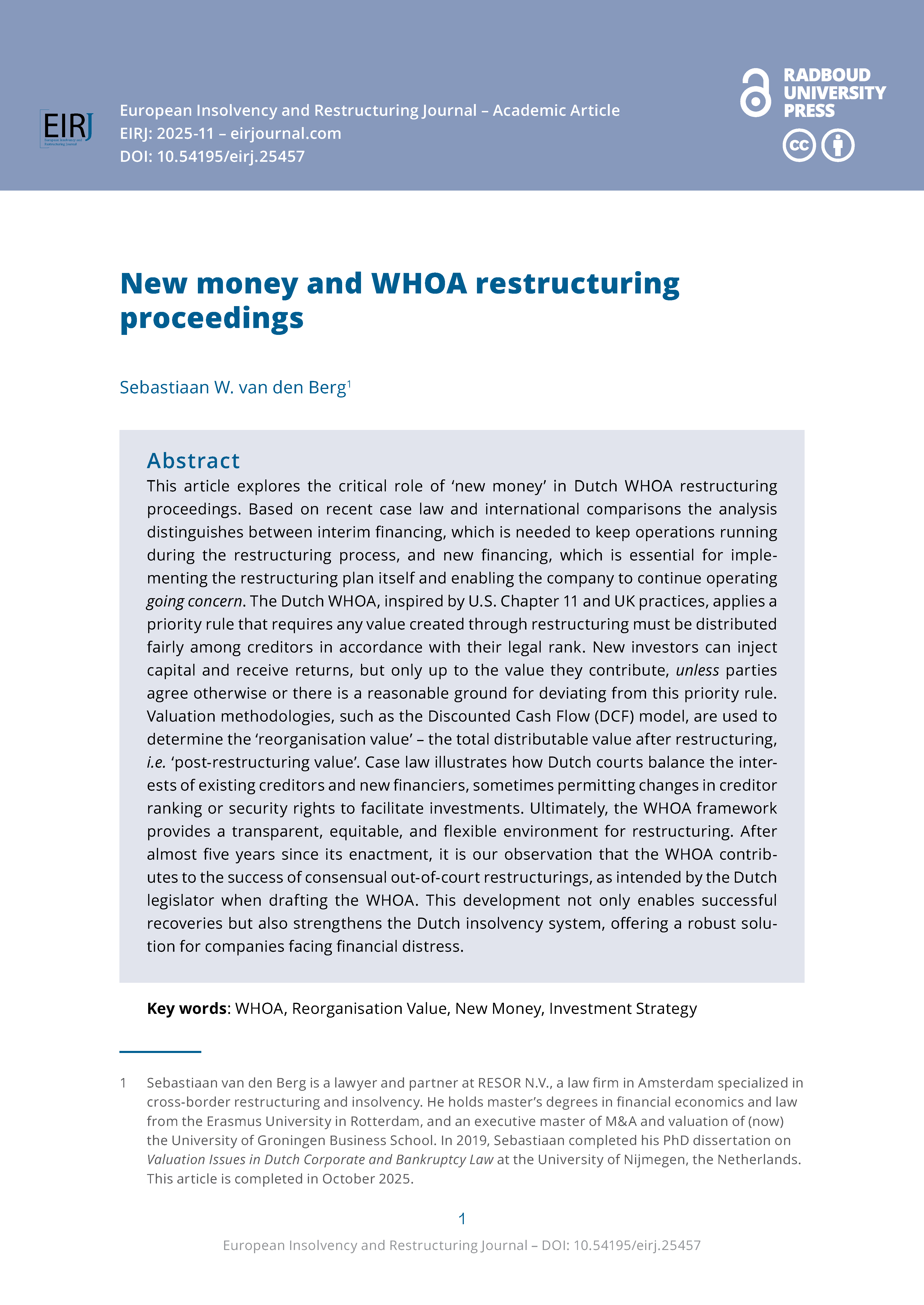 The European Insolvency and Restructuring Journal is a fully open access and double-blind peer reviewed journal focused on the development of insolvency and restructuring laws and practice in Europe.