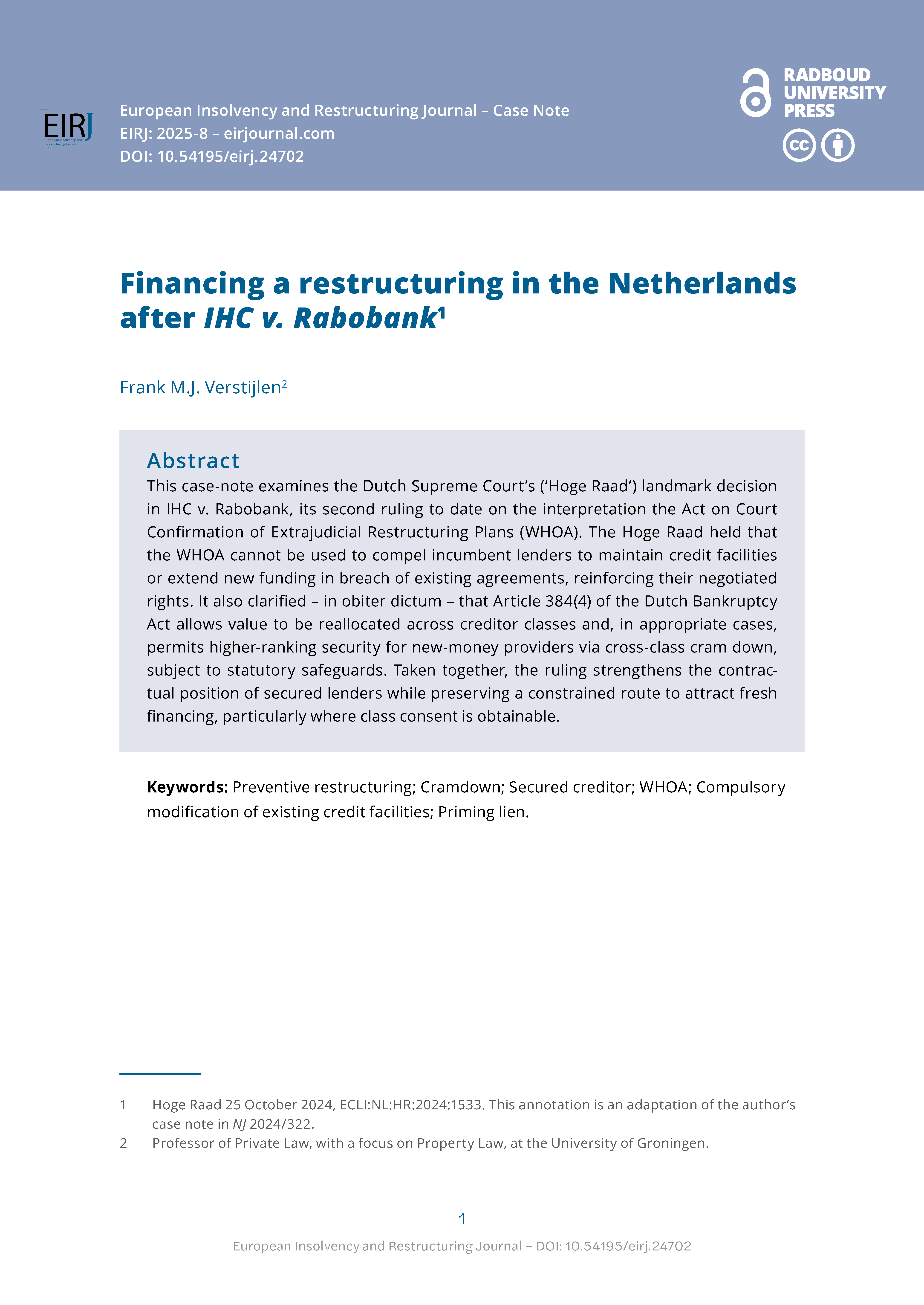 • Financing a restructuring in the Netherlands after IHC v. Rabobank